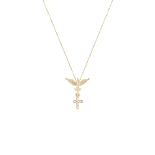 CORRENTE COM MEDALHA ESPIRITO SANTO E PINGENTE CRU